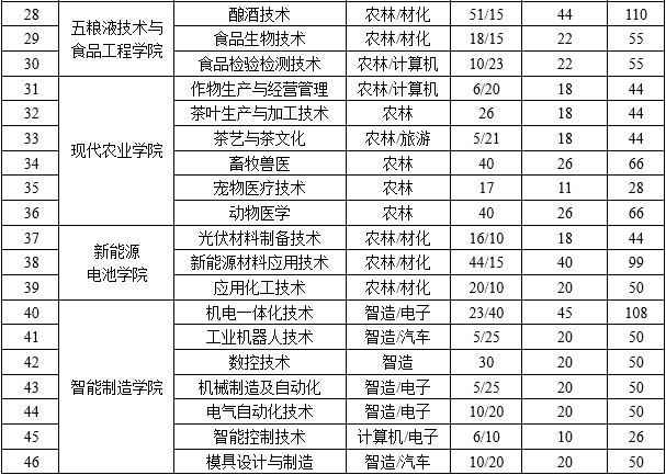 宜宾职业技术学院2026年单招计划表